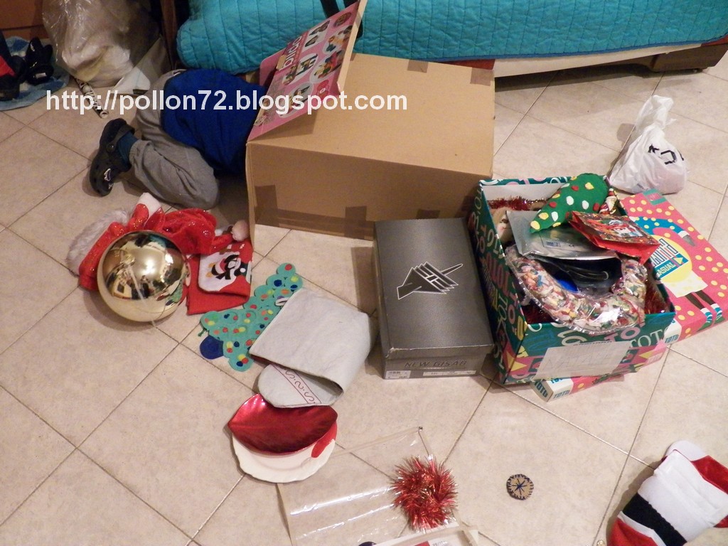 | una parte delle scatole con le nostre decorazioni natalizie |