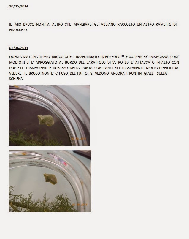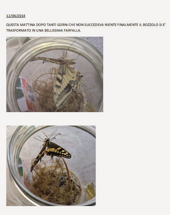 Qui sotto potete leggere il diario che ha tenuto il nostro amico Cristian sulla vista del bruco che si è trasformato in farfalla: