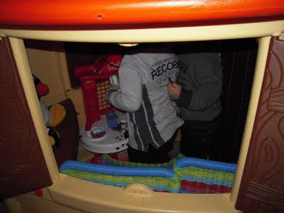Topastro ha ricevuto tanti regali: libri, attrezzi, sciarpa, berretta, giochi in scatola, un treno per il bastone delle tende... Ma la cosa più bella credo sia stata giocare tutto il giorno con il cuginetto che ha un anno in meno di lui. Secondo me sono stati bravissimi. C'è stato qualche piccolo bisticcio, qualche piccolo incidente, ma tra bimbi è normale. Soprattutto perchè il gioco preferito è stato entrare e uscire dalla casetta sbattendo forte la porta.