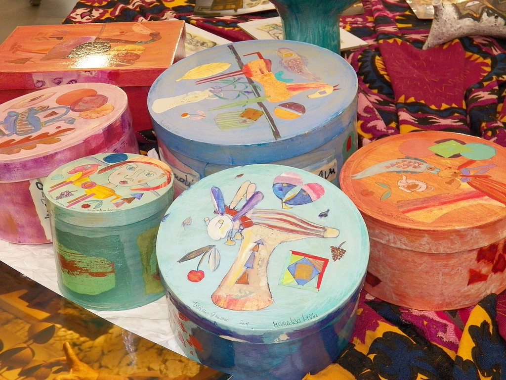 Però mi sono piaciuti i cuscini con quelle belle farfalle colorate e quelle sculture in ferro che, se non ho capito male, sono Le lanterne di Tolstoj.