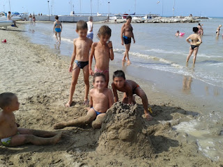 Che abbiamo fatto in questi due lunghi, caldi e bellissimi mesi? Per cominciare non siamo stati soli: mia cugina e la sua famiglia hanno trascorso a Viserba ben due mesi e quindi la maggior parte del tempo l'abbiamo trascorsa con loro. Abbiamo scelto un ombrellone presso il nostro ormai storico Bagno Egisto 38, (e ce lo siamo goduto anche in giugno), e quindi abbiamo trascorso davvero tanto tempo in spiaggia. Samuele è abbronzatissimo, (anche se in confronto ad altri bambini con la carnagione scura è bianco come una mozzarella), capelli schiariti dal sole, è anche bellissimo e credo sia cresciuto parecchio in altezza ma è sempre magro come un grissino.