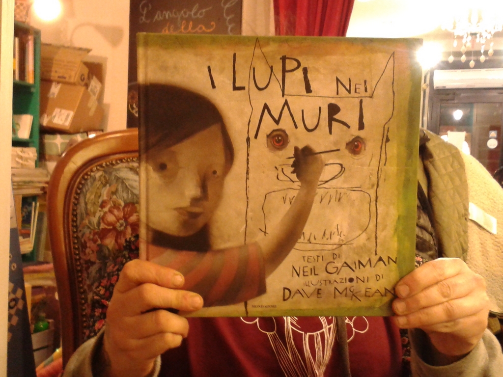 ° I lupi nei muri - Neil Gaiman, Dave McKean. Racconto molto particolare, dalle illustrazioni molto impressionanti, che io e Samuele abbiamo ascoltato anni fa a una lettura in biblioteca. Una bimba sente continuamente rumori strani provenire dai muri, lei sa che sono lupi, ma nessuno le crede fino a quando i lupi escono e invadono la casa!